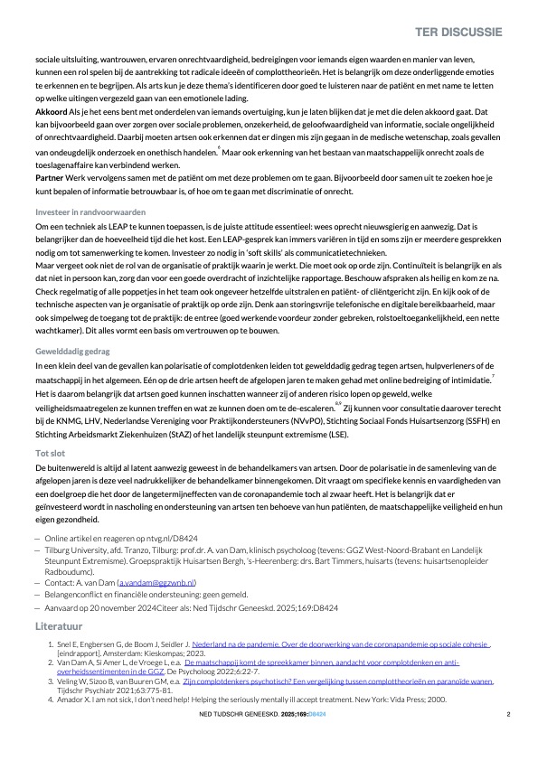 Op uitnodiging van het Nederland Tijdschrift voor Geneeskunde mocht ik samen met bijzonder hoogleraar antisociaal gedrag, psychiatrie en maatschappij Arno van Dam een artikel schrijven over hoe om te gaan met wantrouwige mensen en complotdenkers in de spreekkamer.