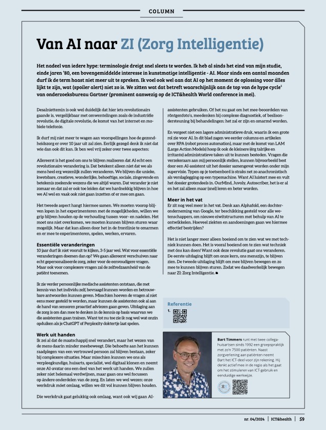 Van AI naar ZI (Zorg Intelligentie) ICT&Health aug. 2024