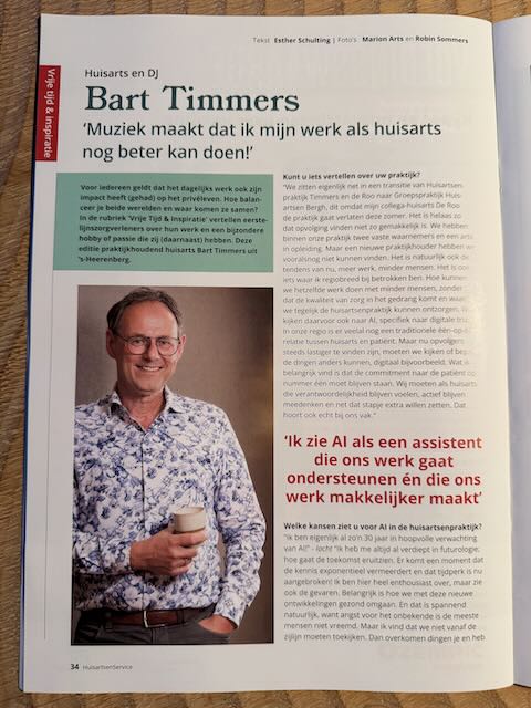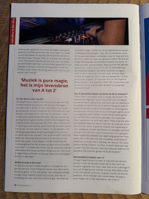 Voor het blad Huisartsenservice mocht ik mijn passie voor zowel het vak huisarts als het vak DJ (en nog wat andere zaken) toelichten. Dat was een leuk interview om te geven!