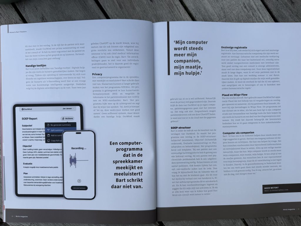 Artikel in glossy van Nictiz over AI en registratielastdoor btimmers_oy2wqxl59 juni 20259 juni 2025 Nictiz Magazine mei 2025 AI tegen registratielast